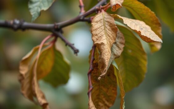 Leukostomoza to choroba, która dotyka roślin, a jej objawy mogą być dość charakterystyczne. Jednym z głównych symptomów jest więdnięcie liści, które traci swoją jędrność i zdrowy wygląd. W miarę postępu choroby liście mogą również zmieniać kolor, a ich opadanie staje się coraz bardziej zauważalne.