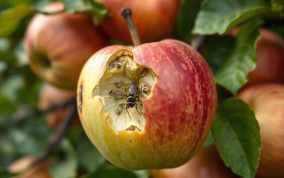 Obecność owocówki jabłkóweczki w sadzie ma poważne skutki, które mogą znacznie wpłynąć na plony. Te małe owady, poprzez składanie jaj w owocach jabłoni, prowadzą do ich uszkodzenia. W konsekwencji owoce stają się mniej wartościowe, a ich jakość drastycznie się obniża. Zainfekowane owoce często gniją, co może skutkować całkowitą utratą plonów.