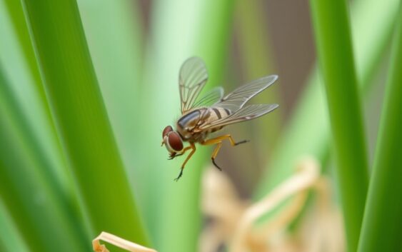 Śmietka cebulanka to istotny szkodnik, który może znacząco wpływać na uprawy cebuli i innych roślin cebulowych. To mała mucha, osiągająca długość od 6 do 7 mm, która wyróżnia się charakterystycznym wyglądem. Proces jej życiowego cyklu zaczyna się, gdy samice składają jaja w glebie, zazwyczaj w pobliżu cebuli. Po pewnym czasie wykluwają się larwy, które zaczynają żerować wewnątrz roślin. To żerowanie prowadzi do poważnych uszkodzeń cebuli, a w skrajnych przypadkach może nawet doprowadzić do ich obumarcia.