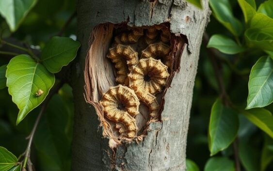 Atak trociniarki czerwicy można zidentyfikować poprzez kilka charakterystycznych objawów, które pomogą nam wczesniej zareagować i zabezpieczyć drzewa przed dalszymi uszkodzeniami. Najbardziej zauważalne objawy to widoczne otwory w korze drzew. Otwory te są efektem żerowania larw, które penetrują wewnętrzne części drzewa, szukając pożywienia.
